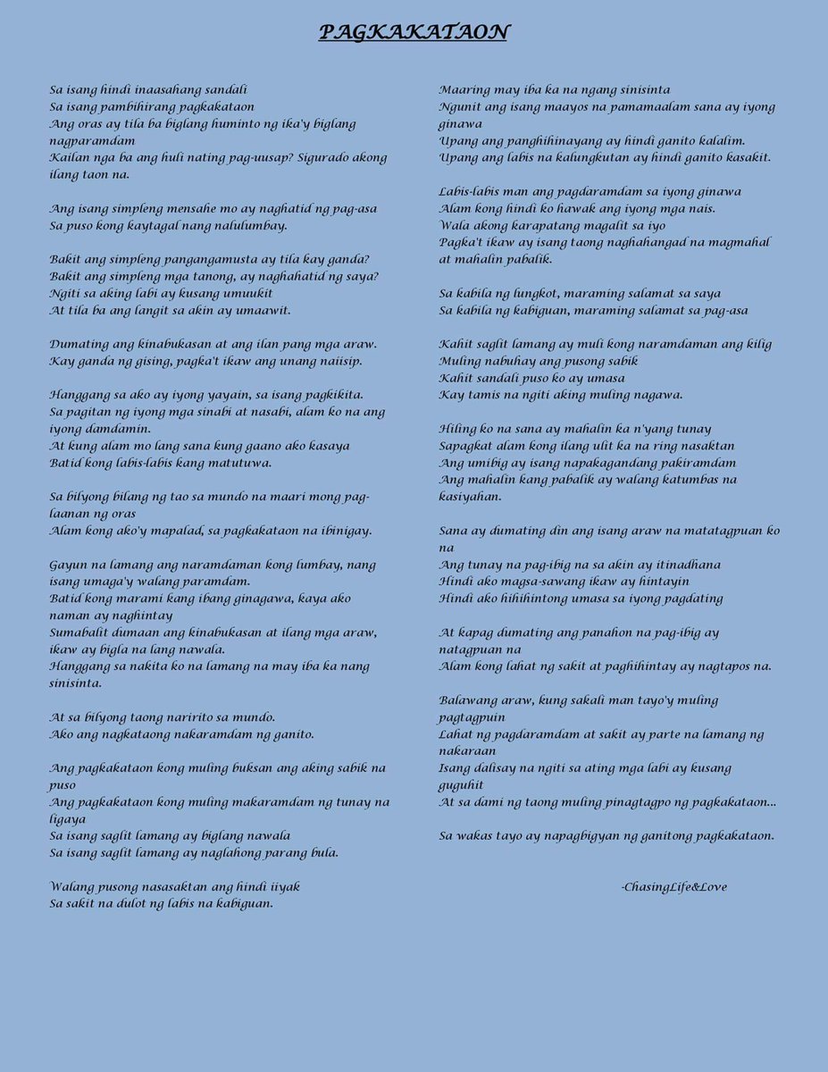 Sana maalala mo na noong una tayong nagkitay kapwa tayo nagtatanong kapwa tayo naghahanap ng lugar kung saan tayo nabibilang at. Pagtataya sa paglilipat ng pag-unawa product and performance ng mga mag-aaral. Tula ng pag ibig.