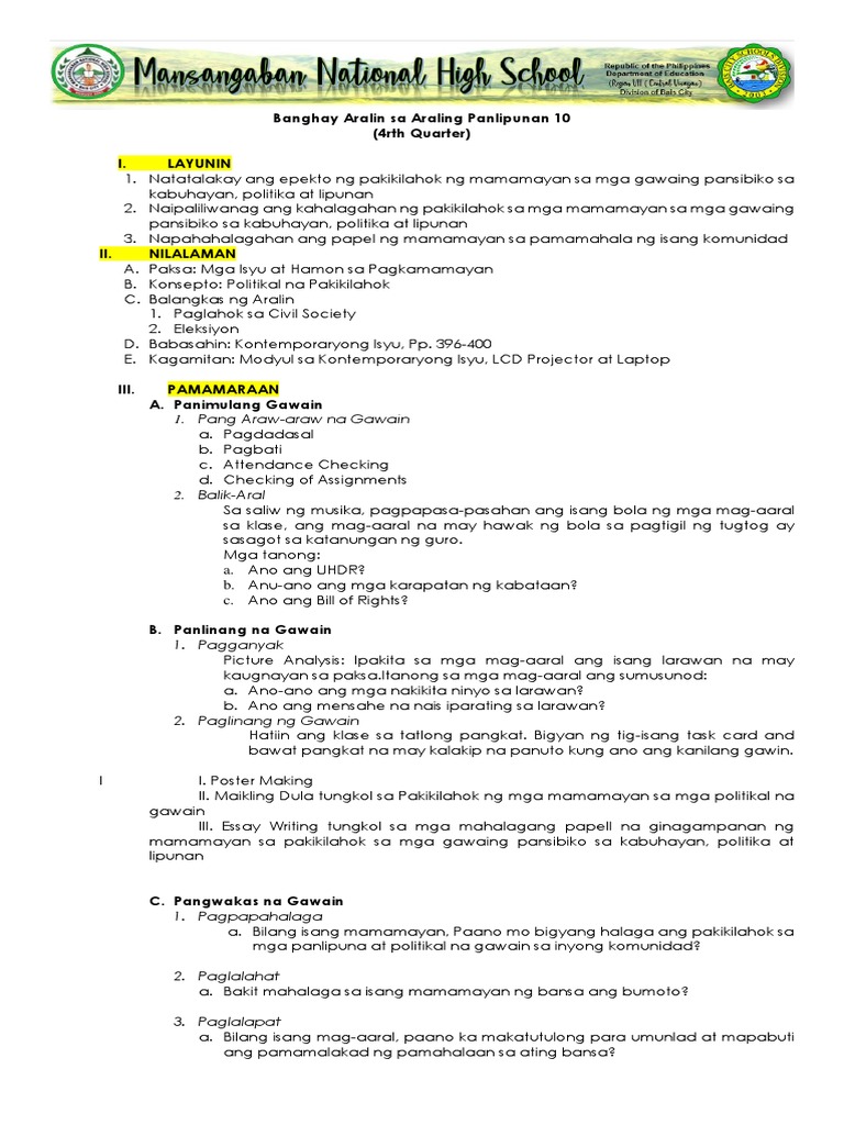 If you dont see any interesting for you use our search form on bottom. Ikalawang linggo unang araw. Mga isyung pang edukasyon at pansibiko at pagkamamamayan civics and citizenship aralin bilang 22 petsa oras seksyon february 18 2019 920 1020 g10 david i.