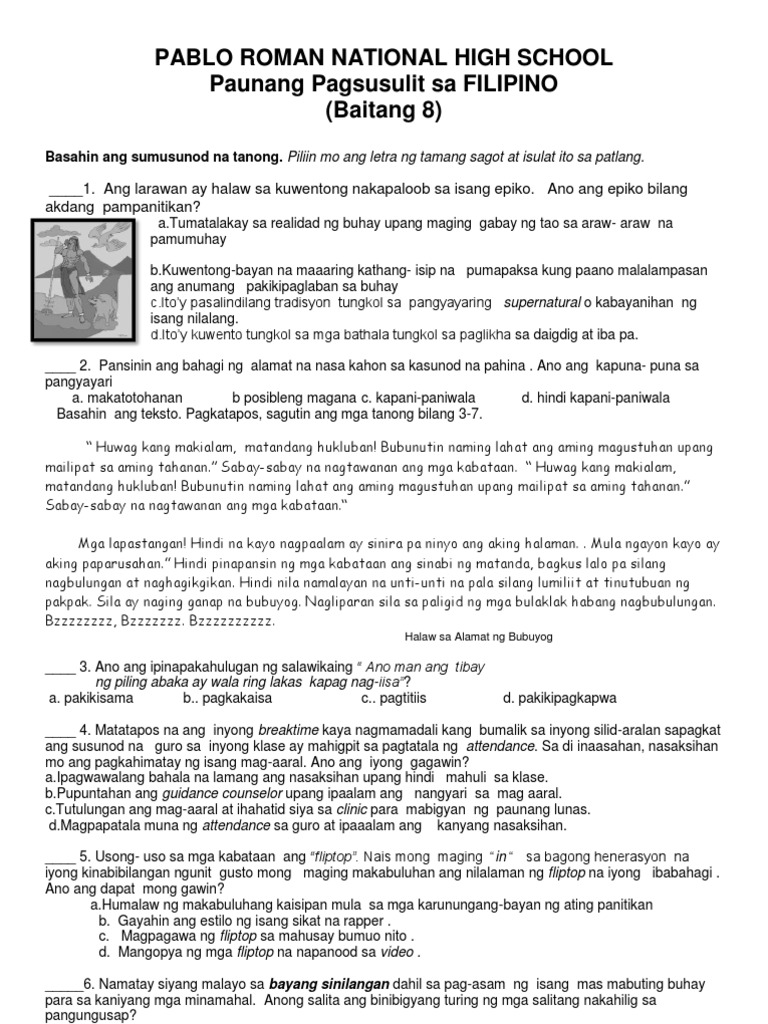 Control the pace so everyone. Unang Markahang Pagsusulit Sa Filipino Grade 8.