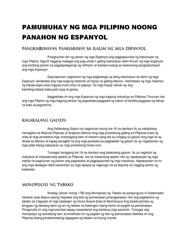 Pamumuhay Ng Mga Pilipino Noong Panahon Ng Espanyol Pdf