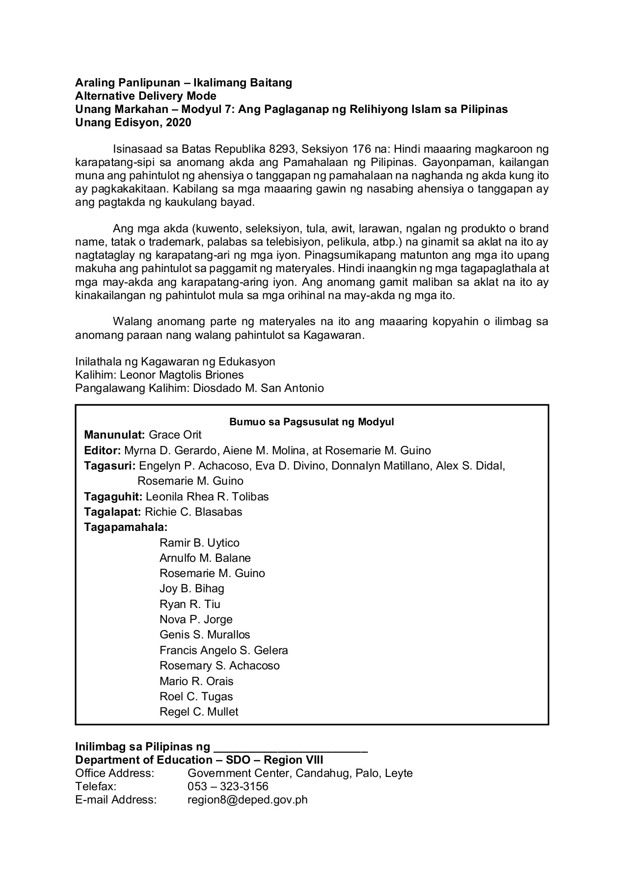 Araling panlipunan 7 modyul 2 kahalagahan ng ugnayan ng. Hindi maaaring magkaroon ng karapatang sipi sa anomang akda ang. Araling Panlipunan Ikaapat na Markahan Modyul 5.