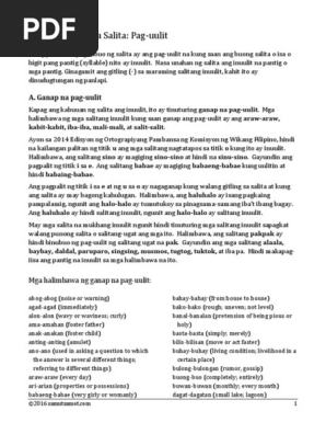 Mga salitang binubuo ng paguulit ng unang dalawang pantig Halimbawa. Kung ang unang pantig ng salitang ugat ay nagsisimula sa katinig-patinig ang katinig at kasunod na patinig lamang ang inuulit Halimbawa. Halimbawa ang salitang pakpak ay hindi binubuo ng pag-uulit ng salitang-ugat na pak.