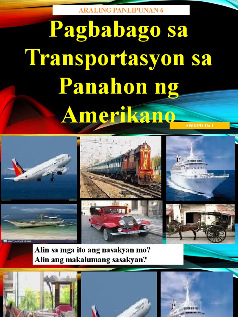 Sila rin ang nagdala ng. Panahon ng Amerikano. Mga uri ng transportasyon noong panahon ng amerikano.